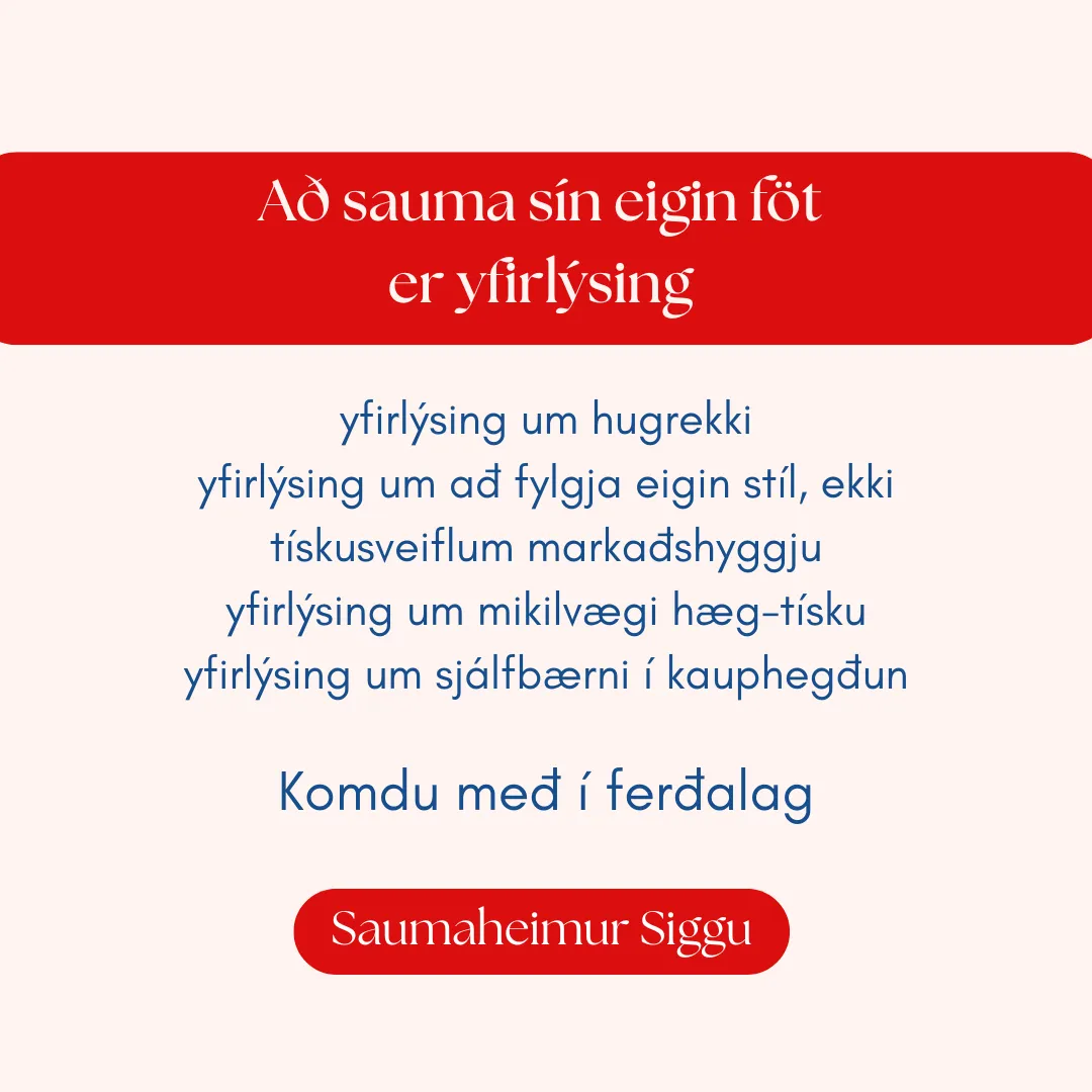 Ég trúi því að þegar við sinnum fötunum okkar, saumum, bætum og breytum, verðum við meðvitaðri um tímann og vinnuna sem fer í að setja saman flík – og breytum þar með eigin kauphegðun og þeirra í kringum okkur.
